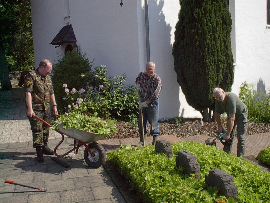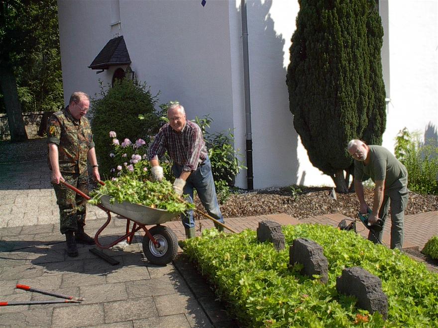 Einen Arbeitseinsatz auf den Soldatenfriedhöfen in Freusburg und Mudersbach absolvierten am heutigen Samstag Mitglieder der RK Wisserland und des ROV Brachbach/Kirchen/Mudersbach. Reinigungsarbeiten sowie das Beischneiden der Gräberbepflanzung prägten die diesmaligen Arbeitseinsätze. Die Freusburger Ortsvorsteherin Birgit Ahnert dankte allen für das selbstlose und beispielhafte Tun und wünschte den fleißigen Helfern viel Erfolg bei den anschließenden Pflegearbeiten auf dem Soldatenfriedhof in Mudersbach. Beim nächsten Arbeitseinsatz wollen die Reservisten mit einem Hochdruckreiniger säubern.