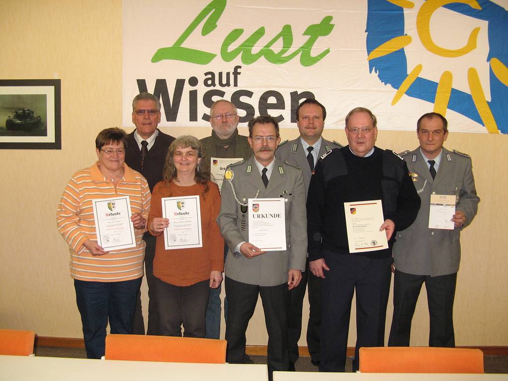 WISSEN/MUDERSBACH/DAADEN. Die RK Wisserland ist eine der aktivsten Gemeinschaften in der Landesgruppe Rheinland – Pfalz. Innerhalb zweier Kreisgruppen, die der stellvertretende Landesvorsitzende Robert Gensmann (Becheln) in seinem Bereich betreut, würdigte er die heimische RK als eine der besonders aktiven Gemeinschaften. Er war als Gast zu der Jahreshauptversammlung gekommen und ließ es an einem Appell, so weiter zu machen, nicht fehlen. Der Vorsitzende, Oberstleutnant d.R. Axel Wienand, begrüßte unter den zahlreichen Mitgliedern den zuständigen Kreisorganisationsleiter Harald Voit vom Reservistenverband. Die gemeinsame Versammlung der RK Wisserland und ihrer Ortsverbände Brachbach/Kirchen/Mudersbach und Daaden sowie der Schießsportgemeinschaft „Oberes Siegtal“ bot wieder einmal den würdigen Anlass, verdiente Mitglieder auszuzeichnen. Mit der Landesmedaille der Landesgruppe RP in Gold, der höchsten Auszeichnung, die diese Verbandsgliederung zu vergeben hat, wurde Vorsitzender Wienand aufgrund besonders herausragender Verdienste um die Verbandsarbeit vom Landesvorsitzenden Dr. Walter Altherr MdL durch seinen Stellvertreter Gensmann geehrt. Aus den Händen des RK – Vorsitzenden erhielt der Leiter des Ortsverbandes Brachbach/Kirchen/Mudersbach, Klaus Schneider, die bronzene Ehrennadel vom Präsidenten des Reservistenverbandes, Gerd Höfer MdB für besondere Verdienste um die Reservistenarbeit. Internetbeauftragter Ingolf Wagner durfte sich auch über eine besondere Auszeichnung freuen. Im Auftrag des Vorsitzenden der Kreisgruppe Rhein/Lahn/Westerwald/Sieg, Jürgen Frey, überreichte Wienand dem Internetbeauftragten die Verdienstnadel der Kreisgruppe in Bronze für sein hohes Engagement und die gute Internetpräsenz. Das Sportabzeichen in Gold mit der Zahl 17, 8 und 6 gingen an Axel Wienand, Michael Jösch und Armin Schneider. Darüber hinaus legte Wienand zum 13. Mal infolge erfolgreich die Bedingungen für das Leistungsabzeichen der Bundeswehr im Truppendienst in Gold ab und erwarb das goldene österreichische Sport – und Turnabzeichen in vierter Wiederholung. Der Bundesverband der Reservisten ehrte ferner zahlreiche Mitglieder für ihre 40-, 35-, 30-, 25-, 20-, 15- und 10 – jährige Verbandstreue. Schließlich wurden Sabine Giebeler, Ines Samrowski und Anita Schmidt mit RK – Verdiensturkunden für die Unterstützung der Vereinsarbeit bedacht. Zum Abschluss der Ehrungen hob der stellv. Landesvorsitzende besonders die gute Kameradschaft hervor und dankte abschließend der RK für die geleistete Arbeit.Einen ausführlichen Jahresbericht, der von Klaus Schneider ansprechend und auflockernd mit diversem Bildmaterial begleitet wurde, gab Wienand den zahlreich anwesenden Mitgliedern. Dazu zählten eine große Anzahl von militärischen Wettkampfschießen, von sportlichen Aktionen und gesellschaftlichen wie auch kulturellen Anlässen. Als Erfolg wertete Wienand wieder einmal die gemeinsame Pionierausbildung in Brodenbach an der Mosel mit dem THW Betzdorf, dem DRK Birken – Honigsessen und der DLRG – Ortsgruppe Hamm, die erstmalig tatkräftig mitwirkte. Zur DLRG wollen die heimischen Reservisten ihr Freundschaftsverhältnis weiter ausbauen. Zu den großen Erfolgen, so Wienand, gehörte der errungene Titel „Kreismeister“ im Schießen sowie der Sieg und sogar Platz 2 beim Wettkampfschießen um den „Fischer – Pokal“ der befreundeten Nachbarkreisgruppe Koblenz/Mosel/Ahr. Uwe Samrowski, Leiter des Ortsverbandes Daaden, betonte in seinem Rechenschaftsbericht, seit der Fusion der ehemaligen RK Daaden mit den Wissenern sei ein Aufwärtstrend zu verzeichnen, der nur möglich wurde, weil man jetzt einer großen agilen Kameradschaft angehöre. Auch das Personalkarussell innerhalb der Ämterbesetzung der RK drehte sich. Oberfeldwebel d.R. Karl – Otto Schmidt aus Daaden übernahm das Amt des Beauftragten der RK für die Förderung der militärischen Fähigkeiten. Sein Ortsverbandskamerad Ulf – Dietmar Schmidt aus Friedewald wurde zum RK – Schirrmeister berufen.Mit besonderer Freude wurde die Aufnahme von neun neuen Mitgliedern registriert, wobei zusätzlich noch drei Aufnahmeanträge in der Warteschleife sind. Besonderes Lob galt der Internetpräsenz der RK, die keine Frage zur Verbandsarbeit offen lässt. Unter www.rk-wisserland.de ist die heimische RK erreichbar und vermittelt dort die Ansprechpartner. (aw) |