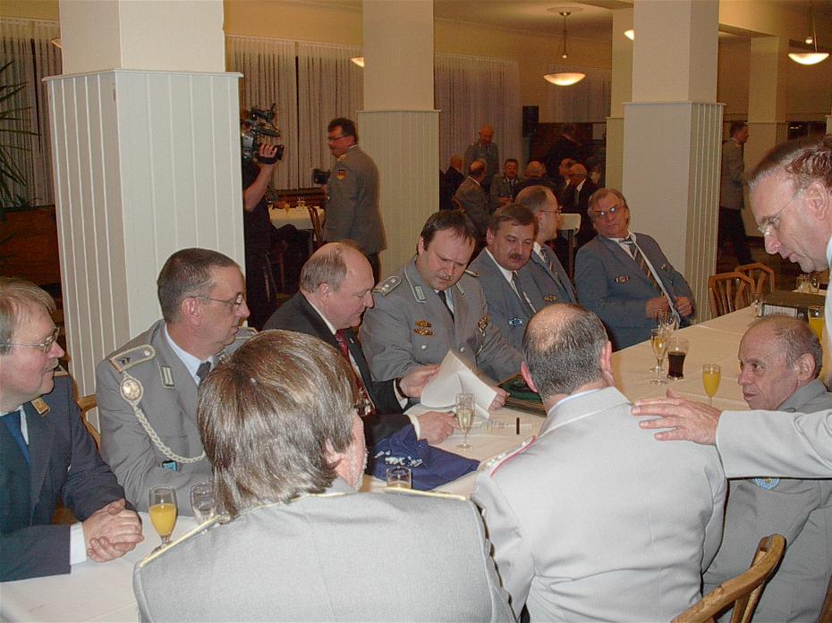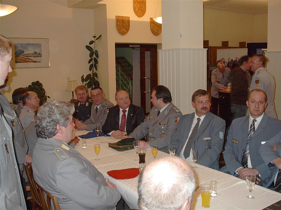 Interessantes Gespräch über die freiwillige Reservistenarbeit führten Landrat Michael Lieber (am Tisch hintere Reihe 3.v.l.) und Wissens RK – Vorsitzendem Axel Wienand (am Tisch hintere Reihe 4.v.l.).